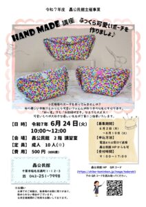ハンドメイド講座 ふっくら可愛いポーチを作りましょ