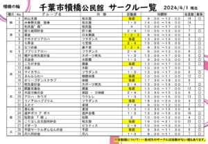 犢橋公民館 サークル一覧表