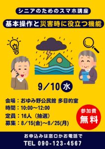 紺 黄色 シンプル イラスト シニア スマホ教室 チラシ フライヤー A4 縦