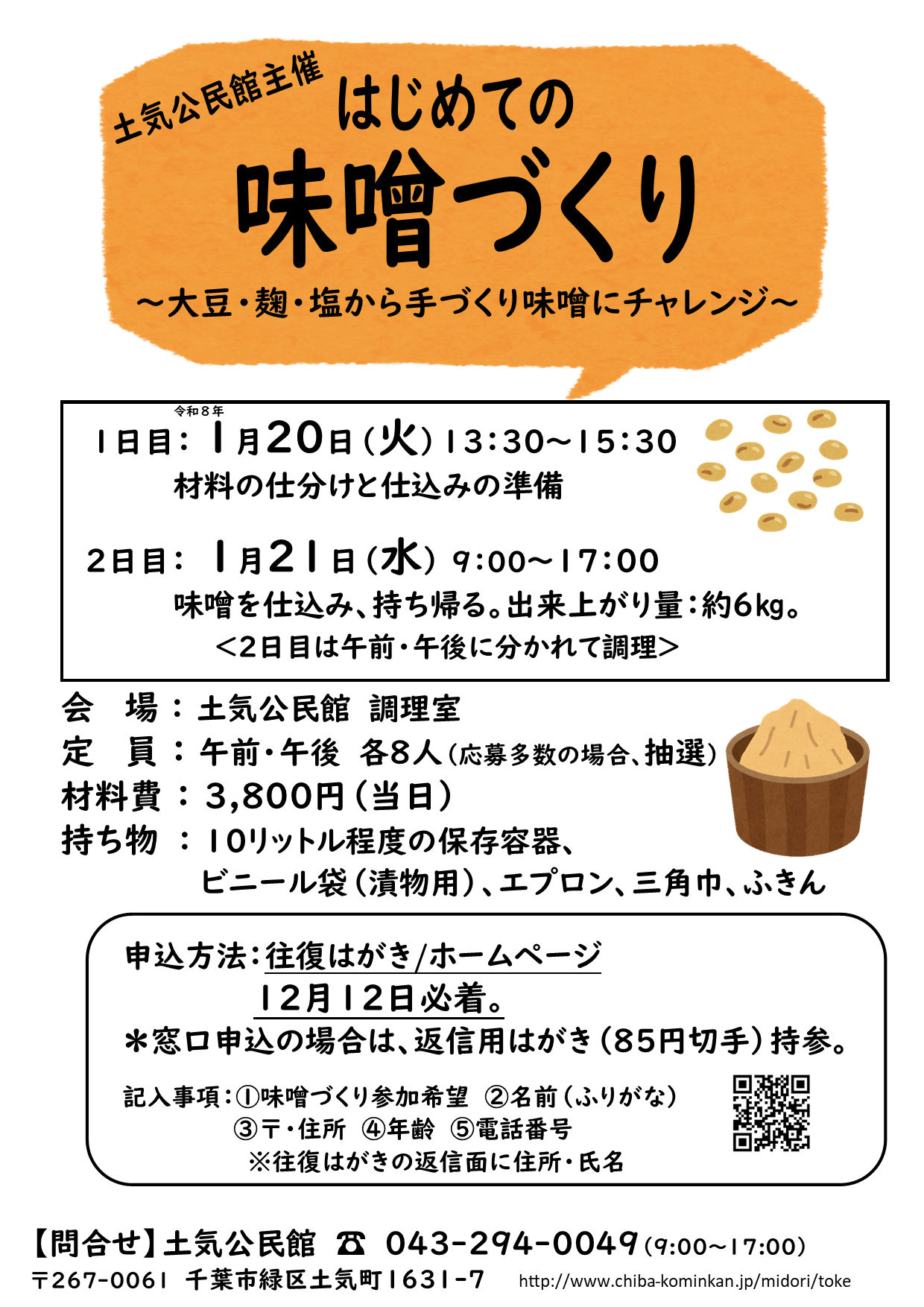 申込み・問合せ:椎名公民館 292-0210(9時~17時)