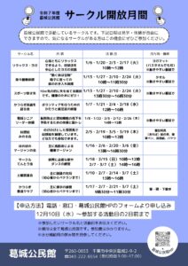 申込み:1/4(日)~1/10(土) 窓口か電話(受付時間9:00~17:00)、またはHP応募フォームで