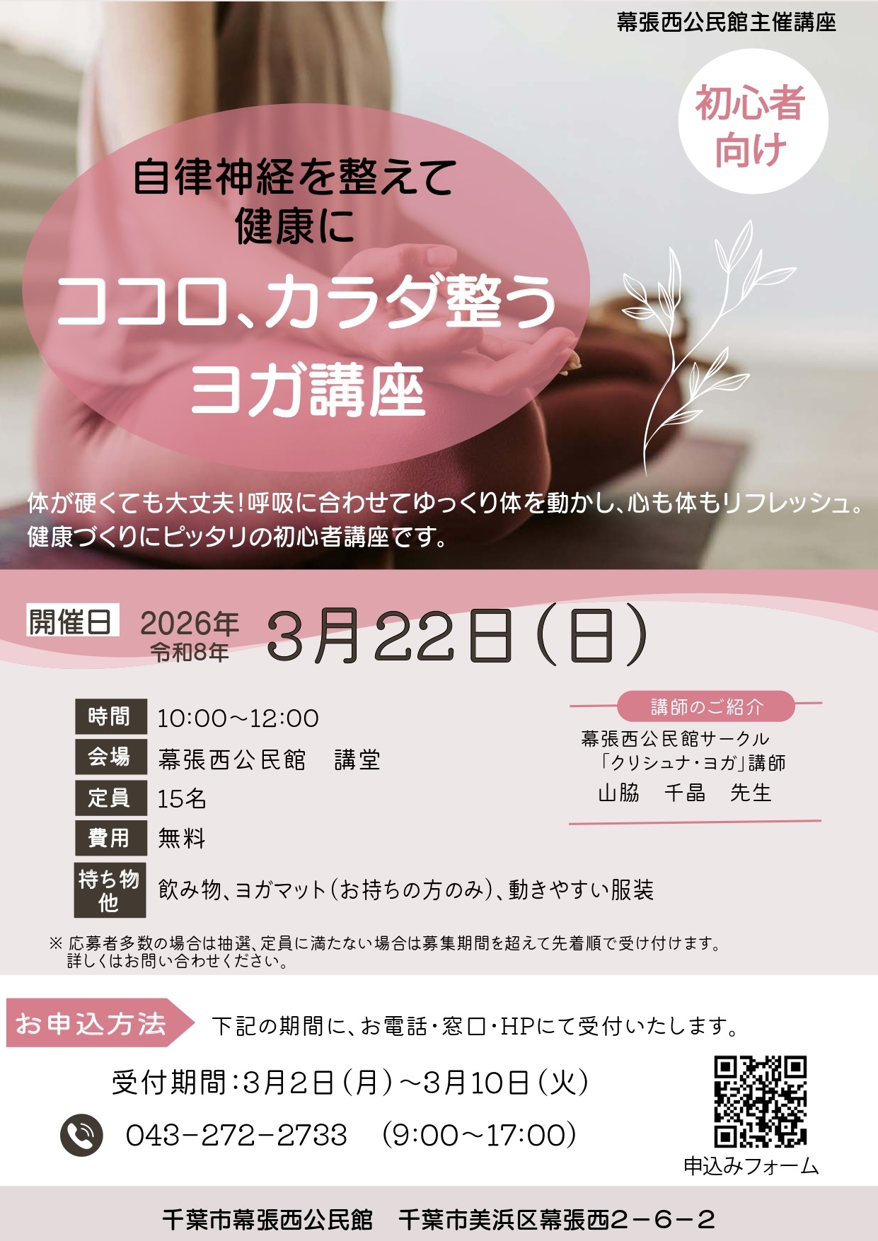 【申込み】 3月2日(月)から3月8日(日)までに、電話・窓口、または以下の申込みフォームよりお申込みください。