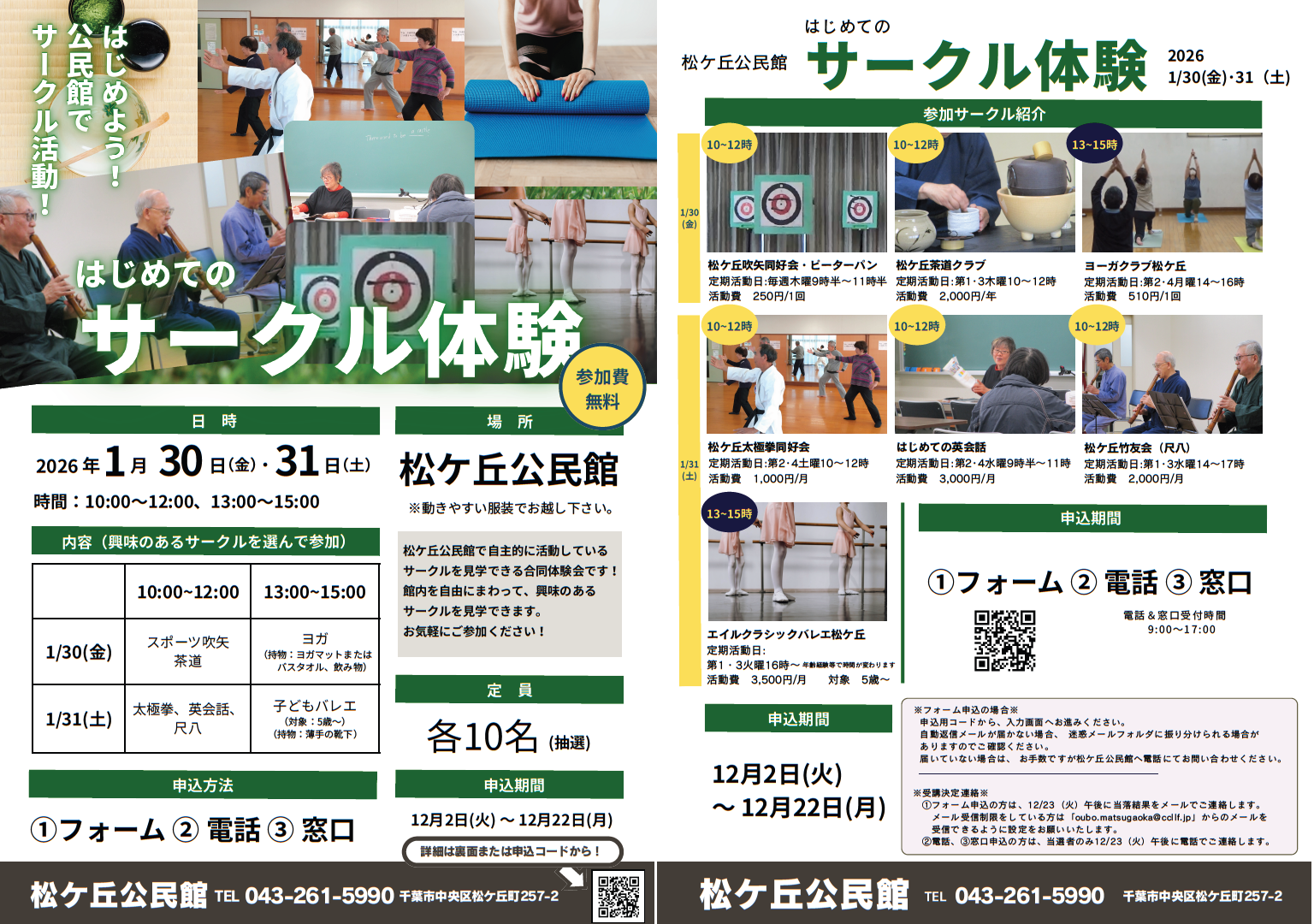 ・問合せ さつきが丘公民館 Tel.043-250-7967 受付時間9時~17時