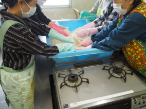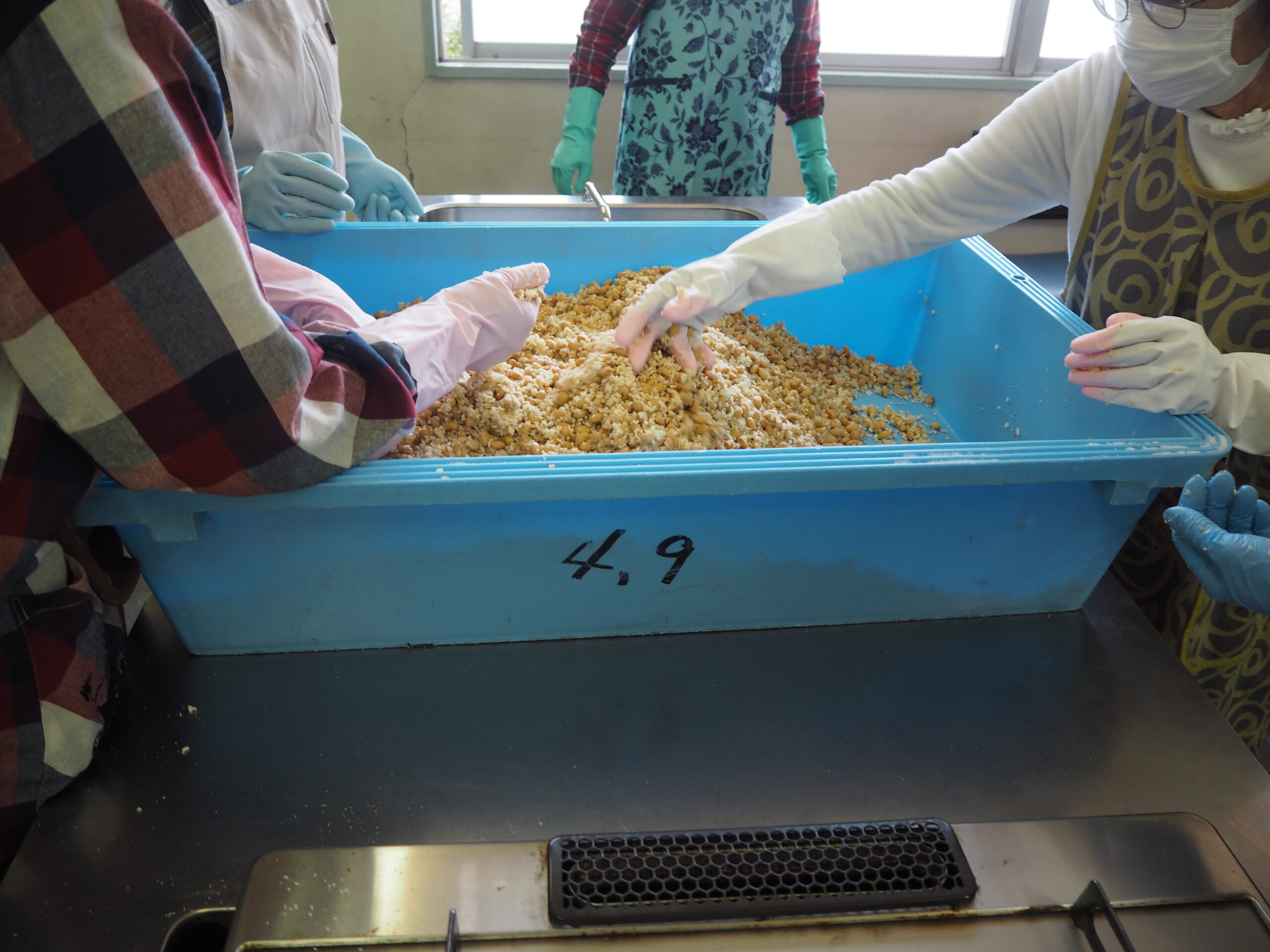 【持 ち 物】マスク、エプロン、三角巾、ゴム手袋、味噌を持ち帰る容器(容量3ℓ以上の漬物容器等)、重し用の塩(1㎏)