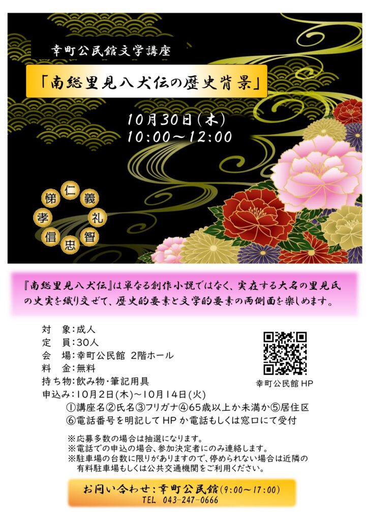 【講座応募受付10/2(木)~10/14(火)】文学講座「南総里見八犬伝の歴史背景」