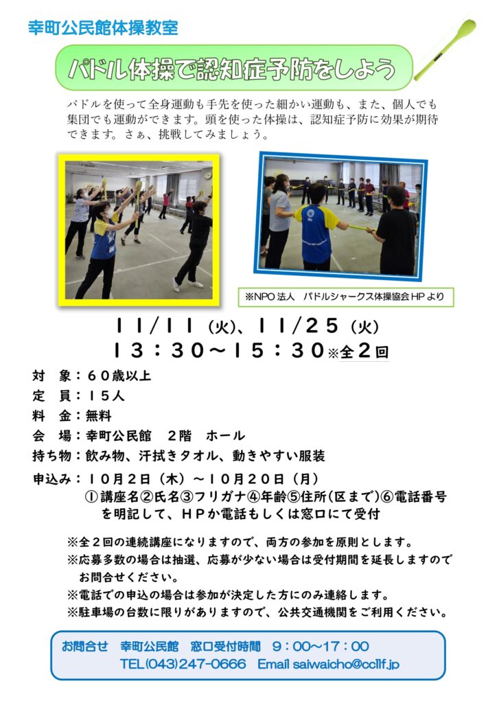 【講座応募受付10/2(木)~10/20(月)】体操教室「パドル体操で認知症予防をしよう」