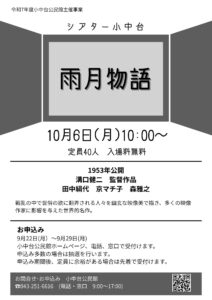 《追加申込受付中》10/6(月)【主催事業】シアター小中台『雨月物語』