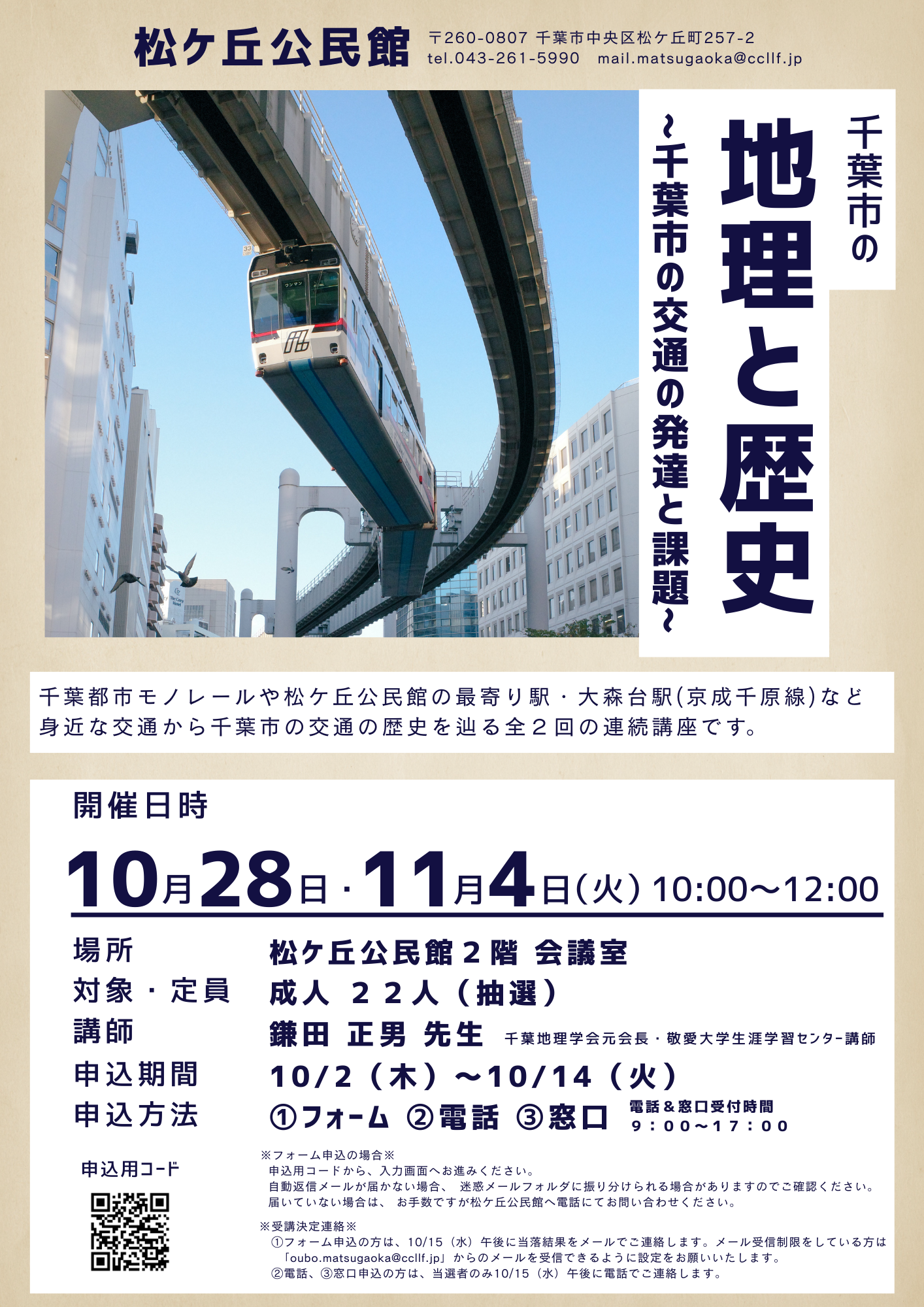 10/28・11/4(火)10:00~12:00千葉市の地理と歴史~千葉市の交通の発達と課題~