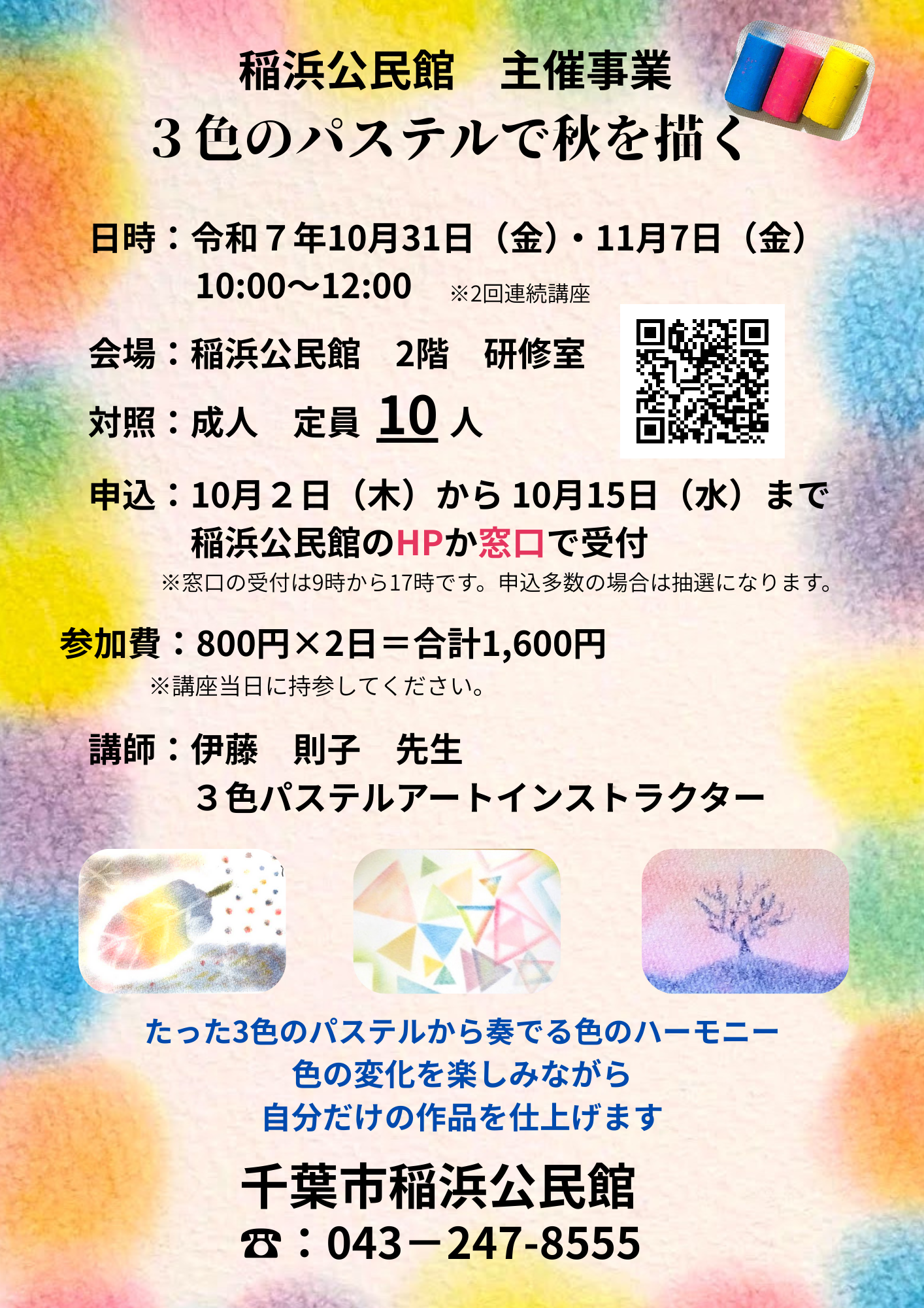 ◆参加者募集!10/31&11/7(金)10:00~12:00開催 「3色のパステルで秋を描く」【申込は10/15(水)まで】