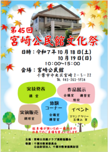 🌟10/18(土)・19(日)🎊第45回宮崎公民館文化祭🎉プログラムを掲載しました🎶