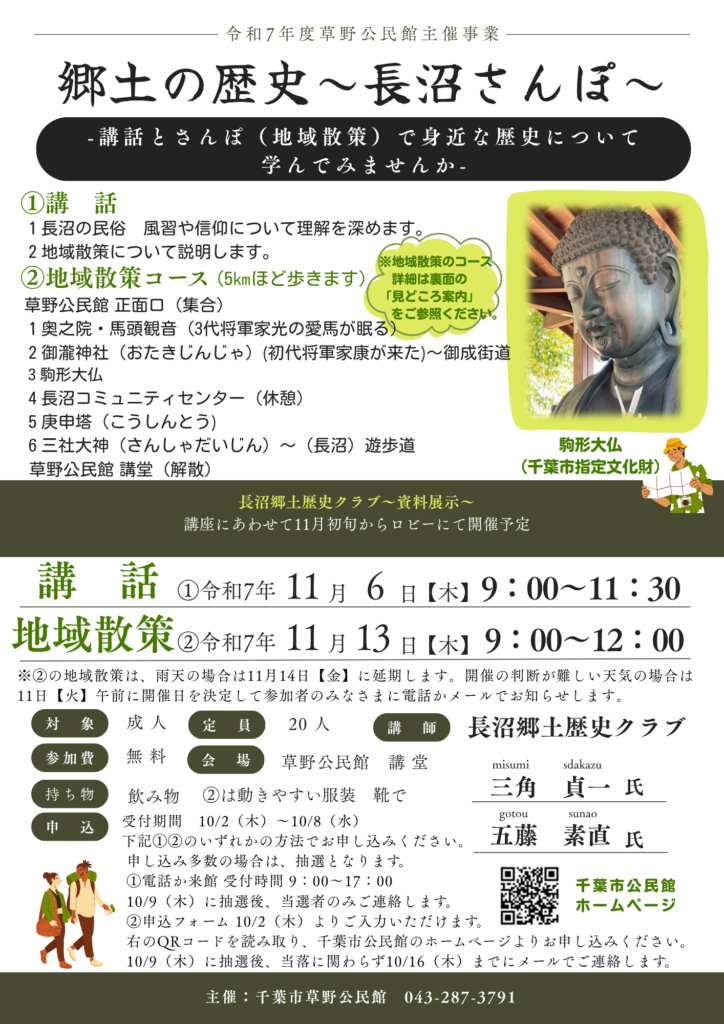 千葉市内在住・在勤・在学の方を優先させていただきます。在勤・在学の方は「連絡事項」にその旨をお書きください。