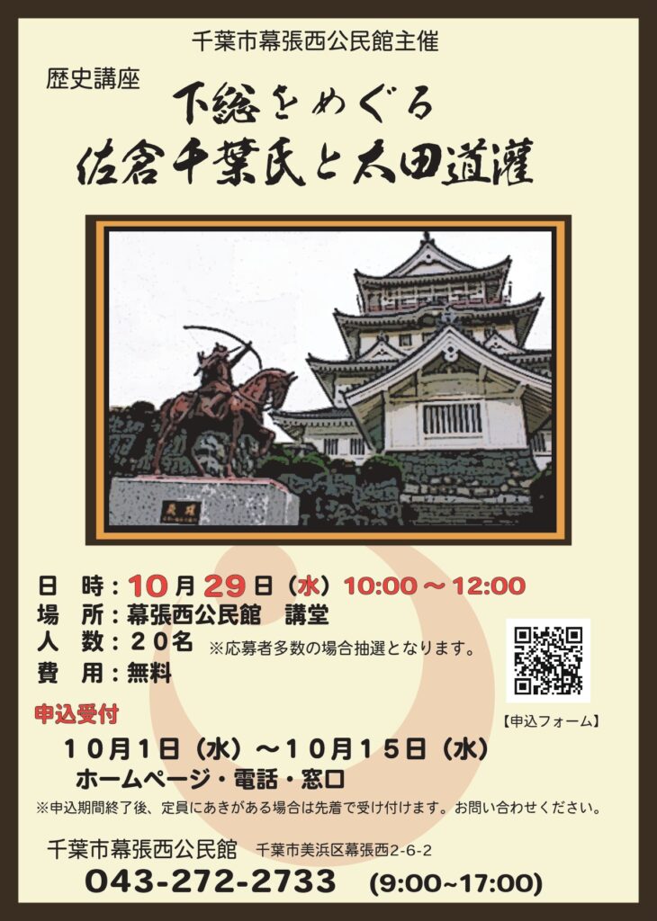 【お願い】 ・講座中、記録用として写真を撮らせていただきます。また、公民館だよりに掲載させていただく場合がございます。ご都合の悪い方は事前にお知らせください。 ・抽選後、メールにて抽選結果をお知らせいたします。10/22までに連絡がない場合、お手数ですがメール、又はお電話にてお問い合わせください。 【Gmailでお申込みの方】 Gmail側のセキュリティの関係上、応募受理メールが届かない可能性があります。公民館に自動送信される申込確認メールは届いておりますが、ご心配な方はお問い合わせくださいますようお願いいたします。