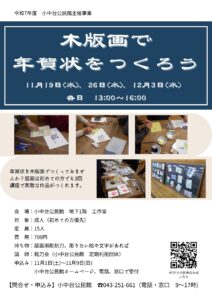 11/19(水)、26(水)、12/3(水)「木版画で年賀状をつくろう」