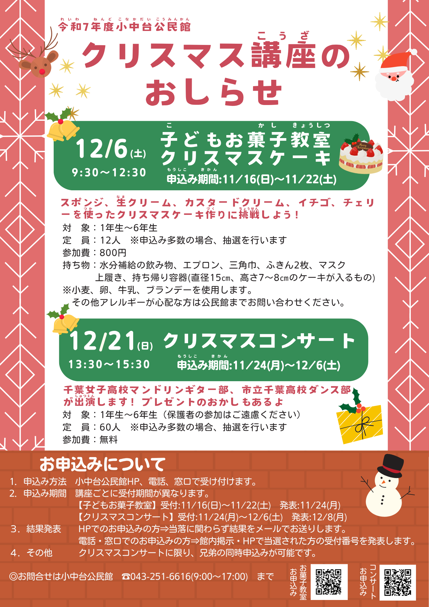 お申込み・お問合せ 小中台公民館 043-251-6616(受付時間 9:00~17:00)