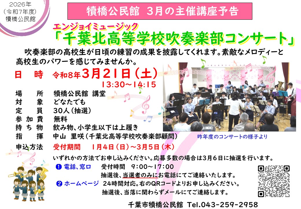 【3/5迄受付】エンジョイミュージック「千葉北高等学校吹奏楽部コンサート」
