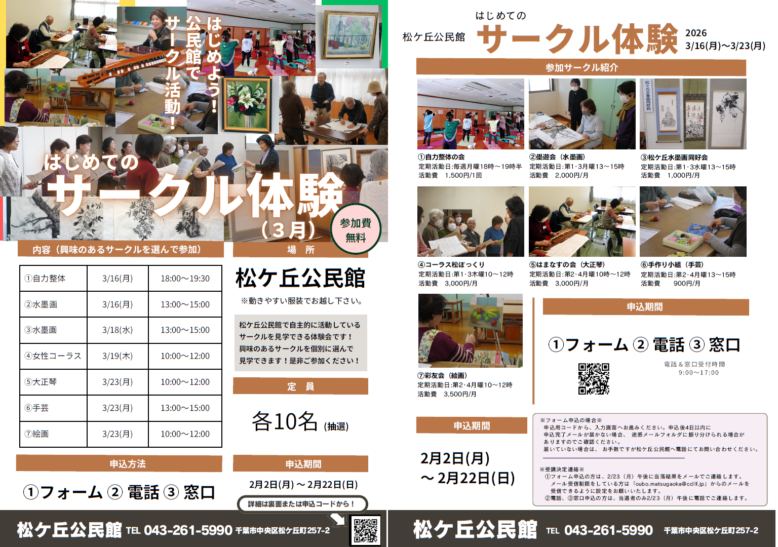 松ケ丘公民館で自主的に活動しているサークルを見学できる体験会です!