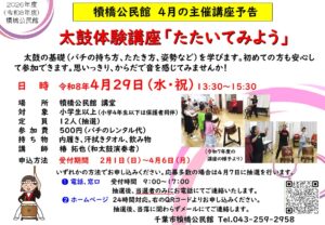 【4/6迄受付】太鼓体験講座「たたいてみよう」