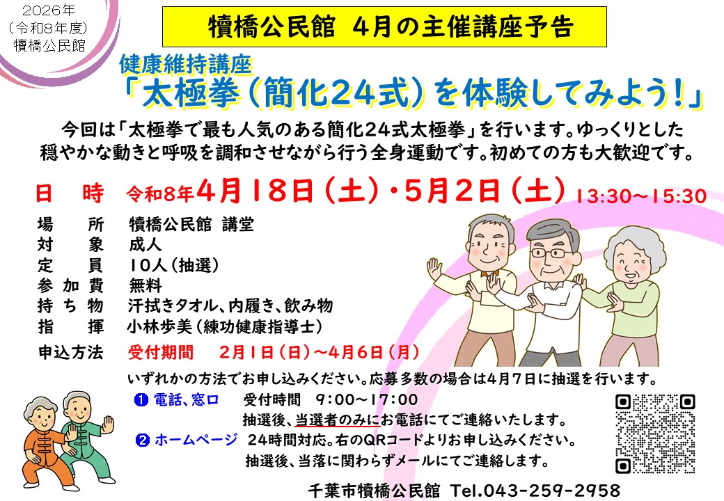 【4/6迄受付】健康維持講座「太極拳(簡化24式)を体験してみよう!」