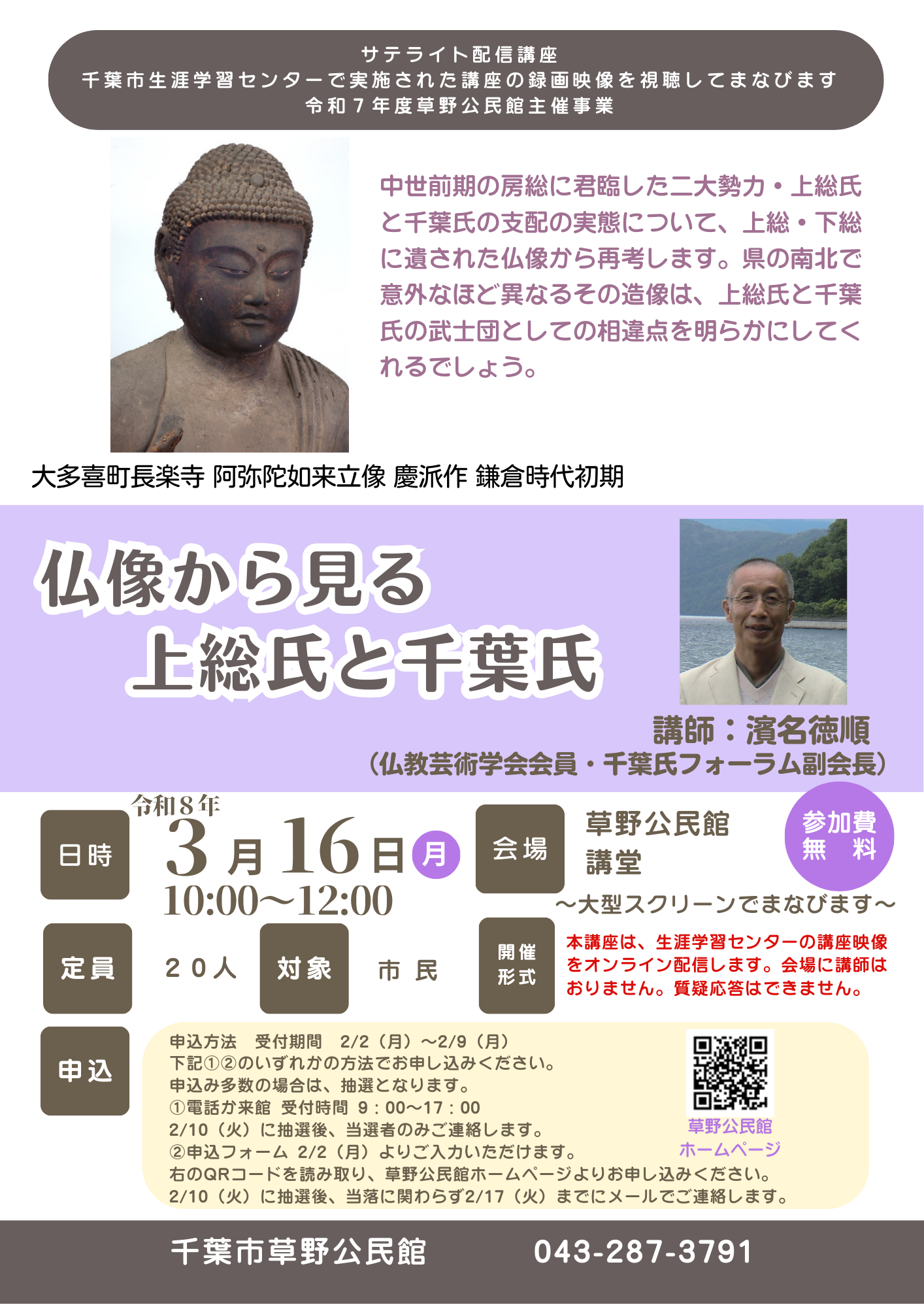 【申込みフォーム】サテライト配信講座 仏像から見る上総氏と千葉氏 3/16㊊ 10:00~12:00