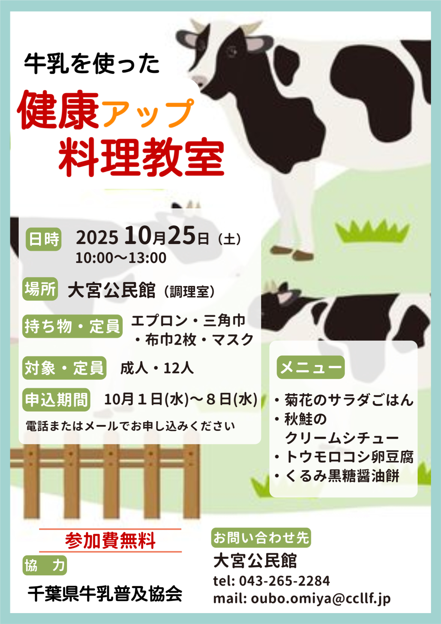 - 2025年9月29日PDF10/25(土)「牛乳を使った健康アップ料理教室」はこちら